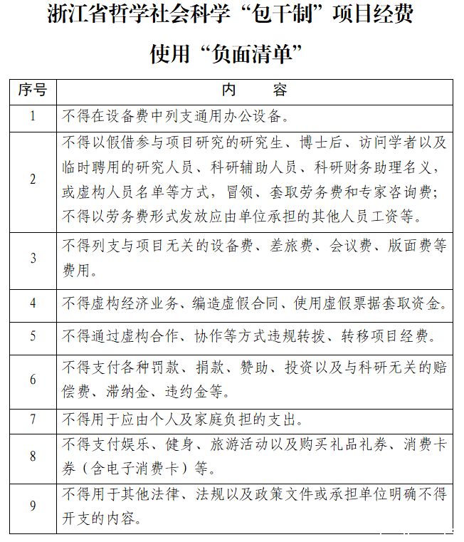 附件:浙江省哲学社会科学 “包干制”项目经费使用“负面清单”